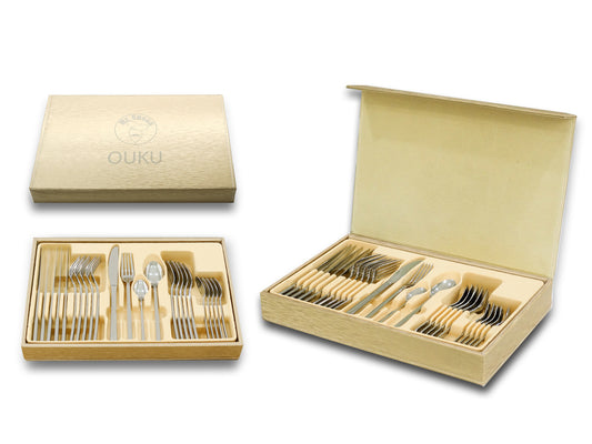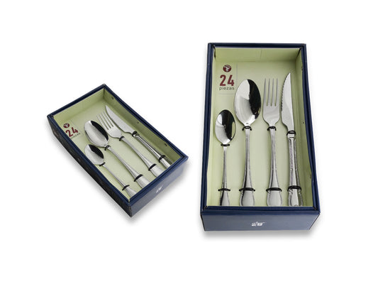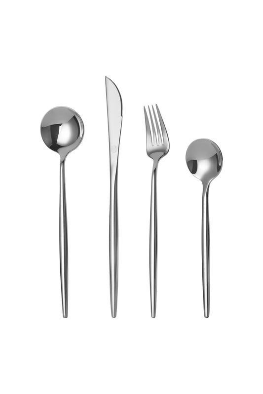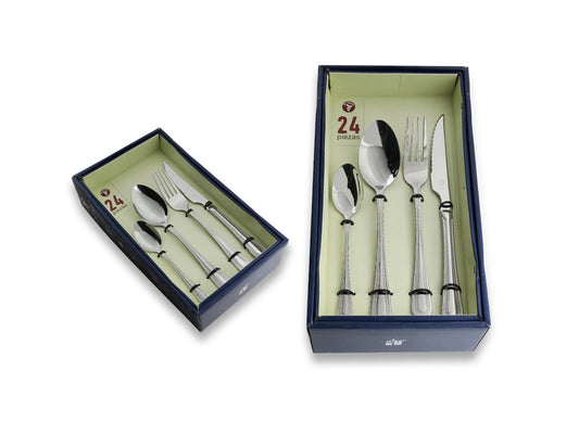 Mr.Spoon Serie Liso Juego de 24 piezas cubiertos,Acero Inoxidable 18/0,Económico y funcional,Incluye cuchillo de carne o mesa,tenedor,cuchara,cucharilla,Mango monobloque,Apto para lavavajillas,Embalaje para regalo,Ideal para casa,hotel,restaurante
